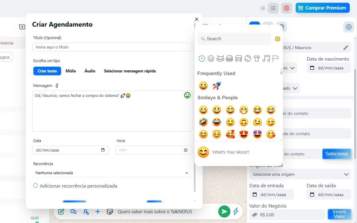 TalkNEXUS não é um produto associado ao WhatsApp INC, Facebook INC, META ou qualquer uma de suas empresas, e não possui relação comercial ou consentimento para uso. Copyright©2025 Talk NEXUS, desenvolvido pelo Grupo NEXUS Automação Comercial Inscrita no CNPJ: 24.160.812/0001-62 Ao fazer seu cadastro em nosso site você concorda com os nossos, Termos de Uso e Política de Privacidade