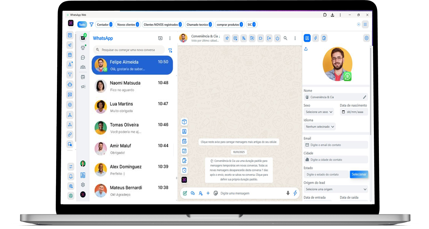 Organize seus contatos de forma eficiente em diferentes abas, potencializando suas estratégias de vendas.